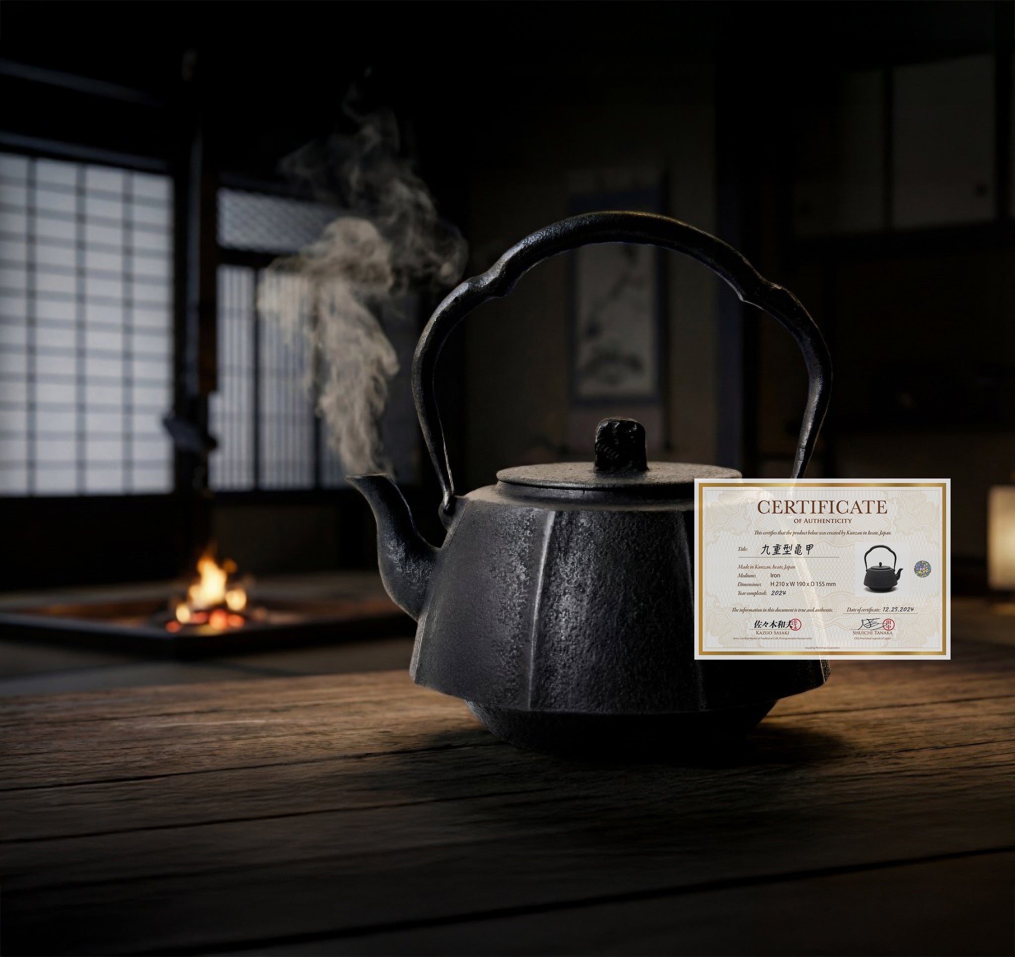 だからこそフェニマックスは、岩手で南部鉄器をつくり続けてきた佐々木会長と提携し本物の日本製南部鉄器だけを佐々木氏 及びフェニマックス代表のサイン入りの証明書ともにお届けします。